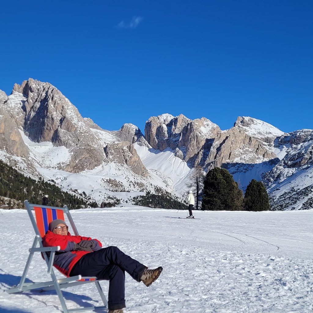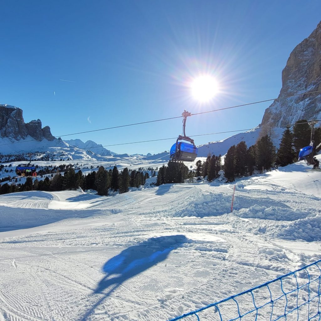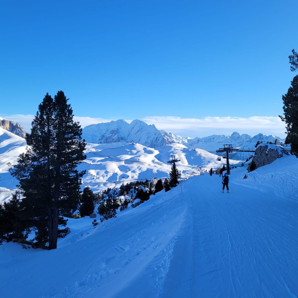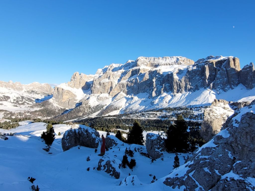 The Dolomites have many rugged peaks, up to a height of 3343 meters and are known for their breathtaking vistas from the tops and beautiful valleys. What better then end a day of skiing in December on top of a hill overlooking the beautiful Fassa Valley, together with a beautiful sunshine and music in the background!