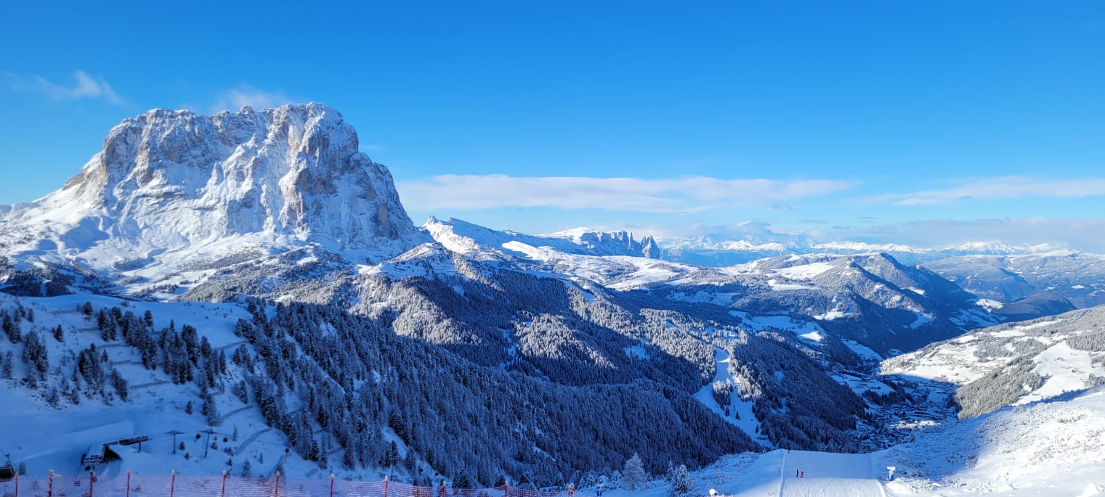 The Dolomites have many rugged peaks, up to a height of 3343 meters and are known for their breathtaking vistas from the tops and beautiful valleys. What better then end a day of skiing in December on top of a hill overlooking the beautiful Fassa Valley, together with a beautiful sunshine and music in the background!